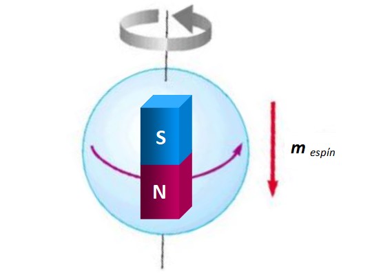 Aparte del momento magnético orbital, el electrón se comporta como si girase sobre sí mismo. No sucede exactamente de esta forma, pero el efecto resultante es el mismo, así que se trata de otra contribución que es preciso tomar en cuenta para el momento magnético neto de un átomo.