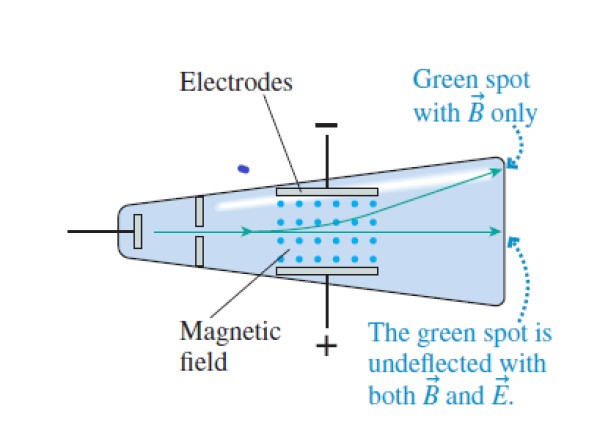 - Hizo variar los campos eléctricos y magnéticos hasta lograr que las fuerzas se cancelaran. De esta manera los rayos catódicos pasaban a través sin experimentar deflexión. Igualando las fuerzas eléctrica y magnética, Thomson logró determinar la velocidad de las partículas del haz.