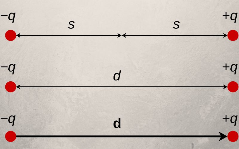Debido a que los protones y los electrones tienen la misma magnitud de carga eléctrica, pero con signos opuestos, 1.6·10-19C, esta es la que se toma en cuenta al evaluar el momento dipolar entre A y B mediante la siguiente ecuación: