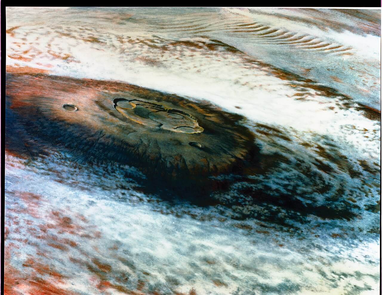 Imagen tomada por la sonda espacial Viking I al Monte Olimpo, 1979. Fuente: NASA