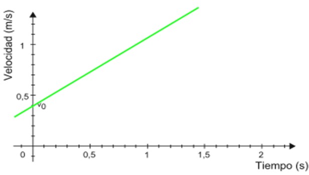 - El corte con el eje vertical indica la velocidad inicial, en este caso es 0.4 m/s.