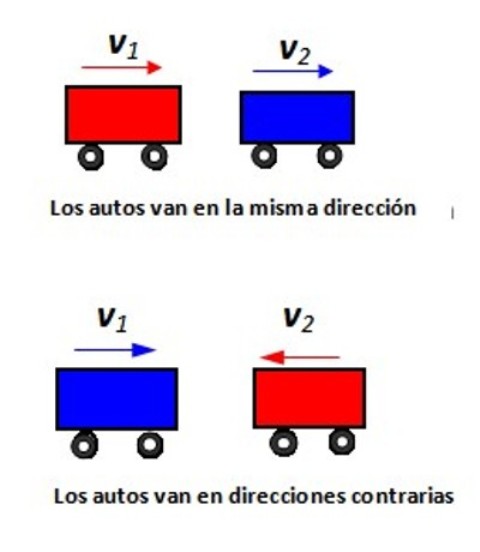 En referencia a la siguiente imagen, indique la velocidad relativa del automóvil 1 respecto al automóvil 2 en cada situación.