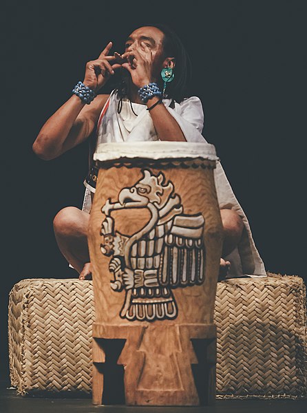Consistía en un tubo fabricado con un tronco de árbol. Se colocaba en posición vertical y se dejaba abierto en el fondo. La parte superior se cubría con una piel estirada que a menudo procedía de los ocelotes.