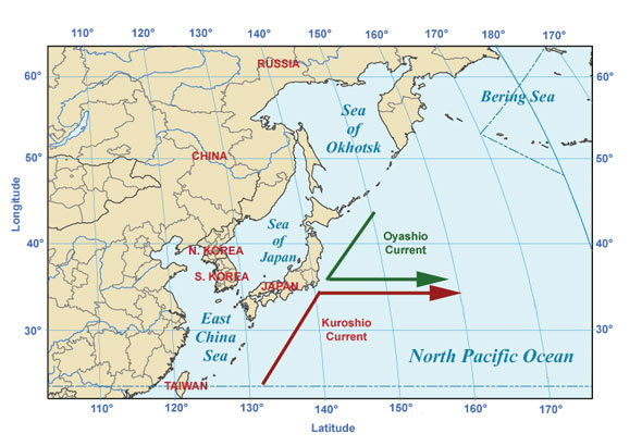 El siguiente destino en la ruta era Japón, donde la nave tomaba la corriente de Kuro Shivo. Sin embargo, en 1596, los japoneses capturaron uno de los barcos y los españoles cambiaron el itinerario: primero al sureste hasta los 11 grados, después subía a los 22 y, por último, a los 17.