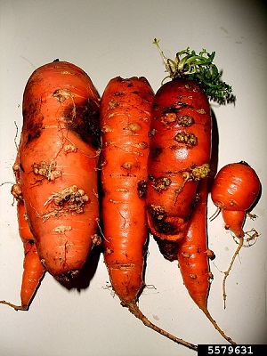 - Meloidogyne incognita y Meloidogyne javanica. Nematodos que afectan en gran medida a diversas plantas, ocasionando daños que eventualmente llevan a su muerte. Entre las consecuencias de una infección por estos nematodos se pueden mencionar: clorosis, atrofia del crecimiento y marchitamiento, además de presentar ciertas protuberancias en las raíces, denominadas nudos, que interfieren con las funciones normales de la raíz, impidiendo que absorba el agua y los nutrientes del suelo y, por lo tanto, muera.