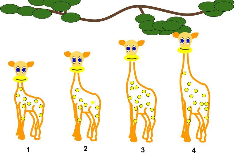 Uno de los ejemplos más citados es el de las jirafas con cuellos muy cortos para alcanzar el alimento en los árboles, lo cual las forzaría a estirar sus cuellos.