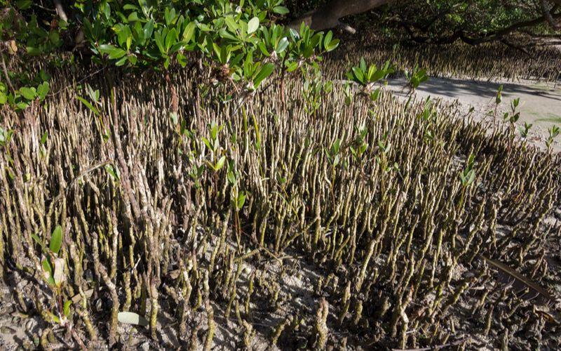 De hecho, los árboles de mangle están adaptados para sobrevivir en suelos carentes de oxígeno a través de las raíces aéreas.