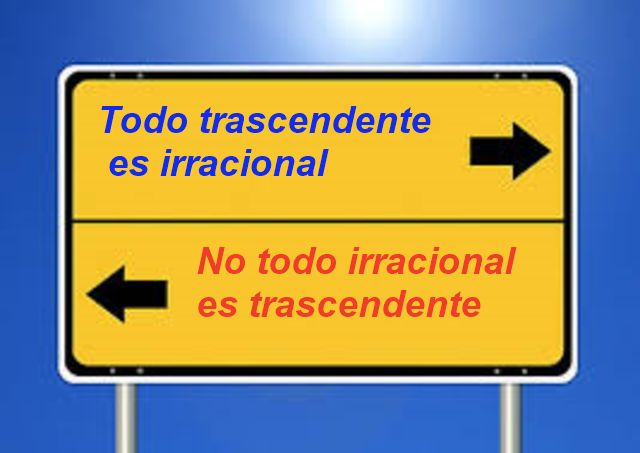 Se sabe que todo número trascendente es irracional, pero no es cierto que todos los irracionales sean trascendentes. Por ejemplo √2 es irracional, pero no es trascendente.