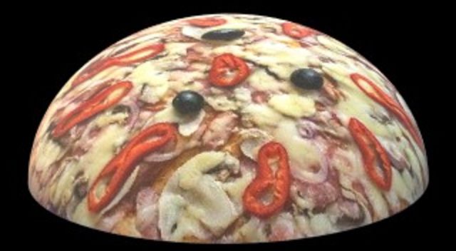 Pizza semiesférica de 30 cm: 1413,72 cm2 (el doble de una circular del mismo diámetro)