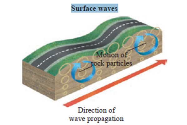 Sobre la superficie de la Tierra también se mueven ondas de manera análoga a las olas del mar. Viajan a menor velocidad que las ondas que se mueven internamente a través del volumen terrestre, pero son capaces de provocar resonancia en las edificaciones con mayor facilidad.