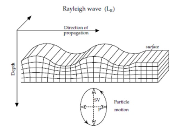 La amplitud del desplazamiento de las partículas decrece exponencialmente con la profundidad, ya que la onda está confinada a la superficie, aunque si se trata de un terremoto de gran intensidad, las ondas pueden darle la vuelta a la Tierra varias veces antes de desvanecerse por completo.