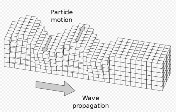 A gran profundidad, las olas oceánicas son ondas longitudinales, como las del sonido. Esto significa que su dirección de propagación es la misma que la dirección en que vibran las partículas.