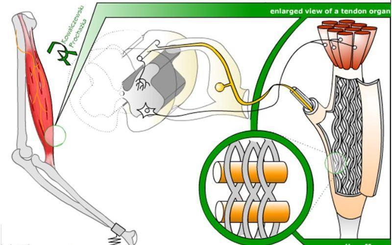 - Transmitir información. El órgano tendinoso de Golgi forma parte del sistema propioceptivo. Esto quiere decir que es uno de los órganos especializados que envía información al cerebro sobre los movimientos propios y los hace conscientes. El sistema propioceptivo está compuesto por receptores neurológicos ubicados en las articulaciones, músculos y ligamentos. La propiocepción nos indica la posición del cuerpo, es decir, estiramiento y contracción muscular, grado de angulación articular, posición de los miembros superiores e inferiores, velocidad de movimiento, entre otros.