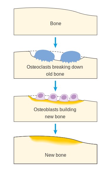 Remodelación ósea. Fuente: Cancer Research UK – Original email from CRUK, CC BY-SA 4.0, Wikimedia Commons