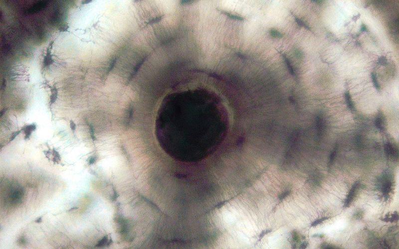 Hueso compacto. En el centro, la osteona. Fuente: Echinaceapallida, CC BY-SA 4.0, Wikimedia Commons