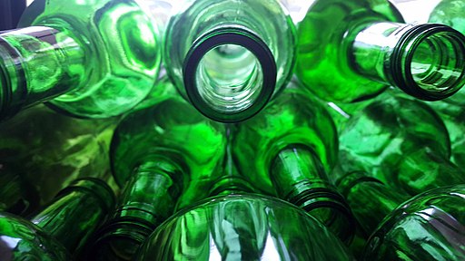 Botellas de vidrio verde. Vinitagangurde CC BY-SA 4.0, Wikipedia Commons