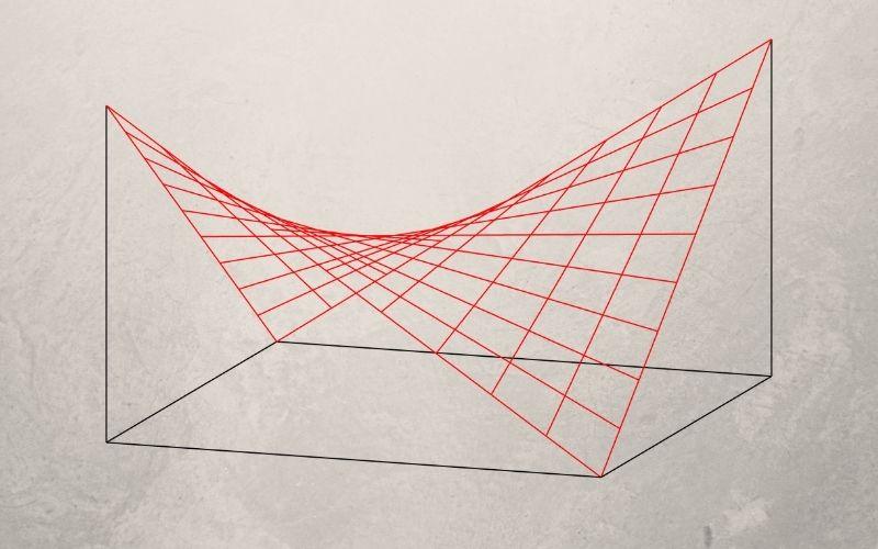 Es precisamente la segunda propiedad del paraboloide hiperbólico la que ha permitido un amplio uso de la misma en arquitectura, ya que la superficie puede generarse a partir de vigas o cuerdas rectas.