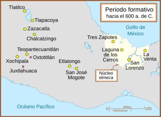 Asentamientos del Formativo Medio en las zonas centro y sur de la República Mexicana. Fuente: Wikimedia Commons