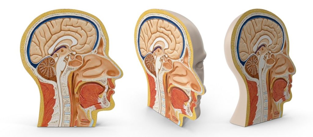 Un corte sagital de la cabeza se ve así: