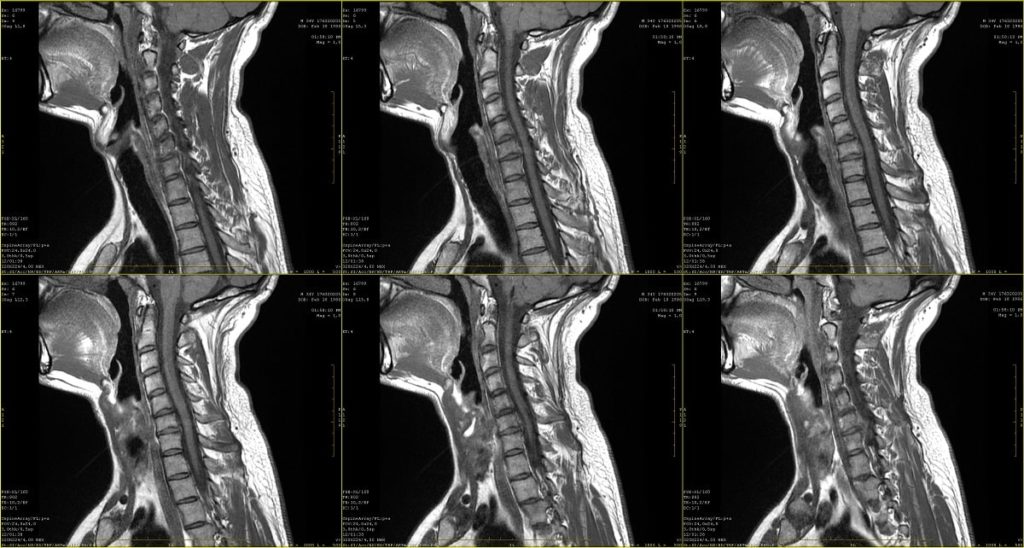 Finalmente, en esta imagen se muestran 6 resonancias magnéticas con un plano sagital del área del cuello: