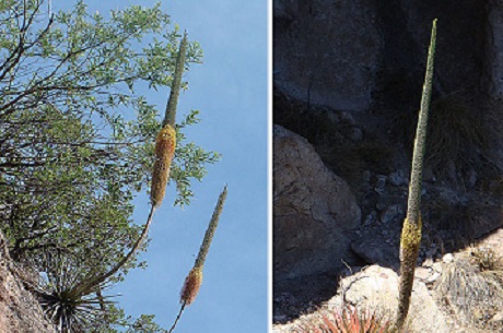 Sus puntas están endurecidas y tienen un gran filo, pudiendo penetrar la piel. Florece produciendo un tallo de más de dos metros de alto. Esto ocurre una sola vez, luego de lo cual, la planta muere.
