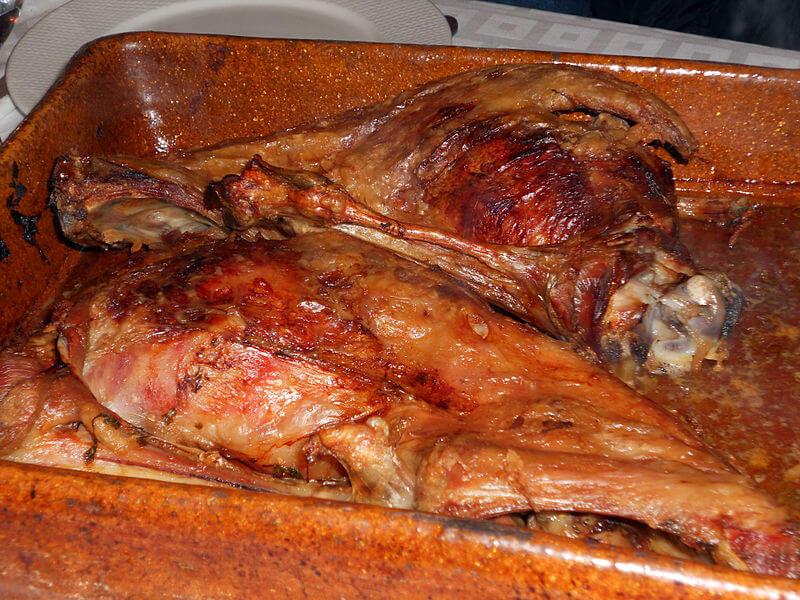 Luego de haber reposado en la preparación varias horas, el cordero se cocina al horno. Luego se corta en trozos y se sirve acompañado de ajíes y papas.