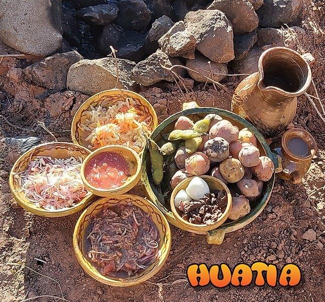 Se trata de papas cocidas en un horno hecho en la tierra. Para su preparación, se excava un hoyo en el cual se introduce leña que se enciende para calentar el hoyo al rojo vivo.