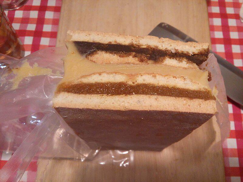 Se trata de un alfajor de gran tamaño hecho a base de galletas de harina, mantequilla, yemas de huevo y leche, compactadas y hechas un todo con manjar blanco.