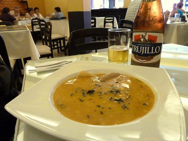 Receta muy típica de la costa norte peruana, concretamente de Trujillo, la capital de La Libertad. Se trata de una sopa de trigo, carne y menestra. Su origen es andino, de ahí que el nombre provenga del quechua.