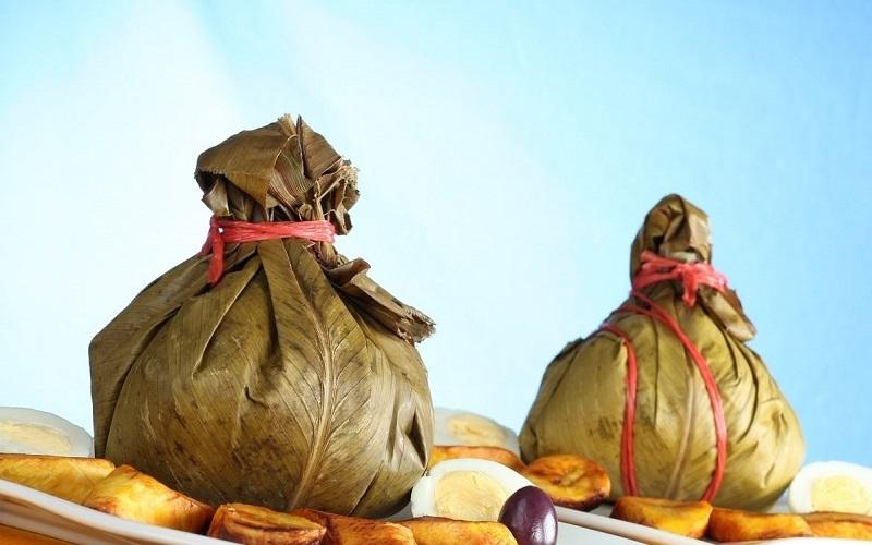 Estos ingredientes se mezclan y envuelven en una hoja de bijao previamente ahumada para suavizarla. Se deja cocinar en una olla con agua durante media hora.