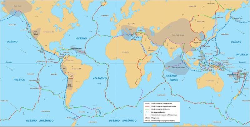Las placas tectónicas son capas subterráneas que se mueven, flotan y algunas veces se fracturan, y cuyo movimiento y choque puede desencadenar fenómenos de deriva continental, terremotos, nacimiento de volcanes, formación de montañas y trincheras oceánicas.
