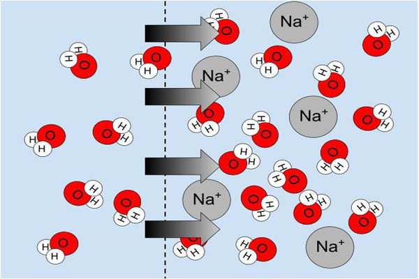 A mayor cantidad de solutos disueltos hay menor energía libre del agua, es decir menor potencial hídrico. Por lo tanto, el agua trata de establecer un equilibrio fluyendo desde soluciones con baja concentración de solutos hacia soluciones con alta concentración de solutos.