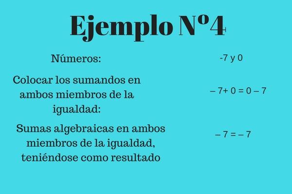 Consiste en adicionar el cero (0) a un número x en ambos miembros de la igualdad, dando la suma como resultado el número x.