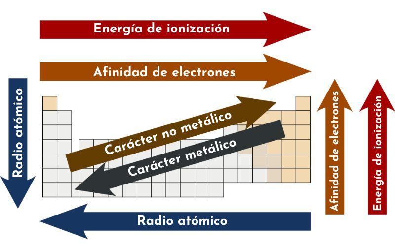 De todas las propiedades, estas se caracterizan, como su nombre lo indica, por ser periódicas, esto es, si se estudia la tabla periódica se podrá certificar que sus magnitudes obedecen una tendencia que coincide y se repite con el ordenamiento de los elementos en períodos (filas) y grupos (columnas).