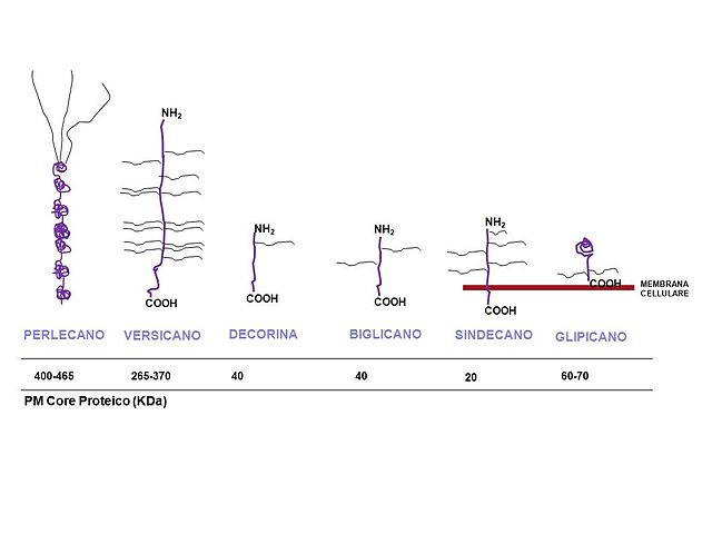 Se trata de moléculas bastante diversas en cuanto a estructura, forma y función. En las células de los animales vertebrados, por ejemplo, se han identificado varias combinaciones de distintos tipos de proteínas y distintas clases de glucosaminoglicanos, a saber: