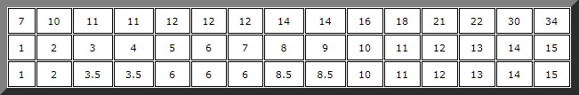 En forma semejante se procede con el valor 12, que se repite tres veces con rangos 5, 6 y 7.
