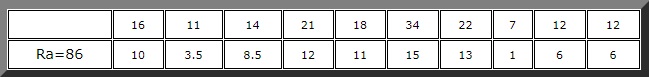 Los rangos Ra y Rb se obtienen de las sumas de los elementos de la segunda fila para cada caso o región.