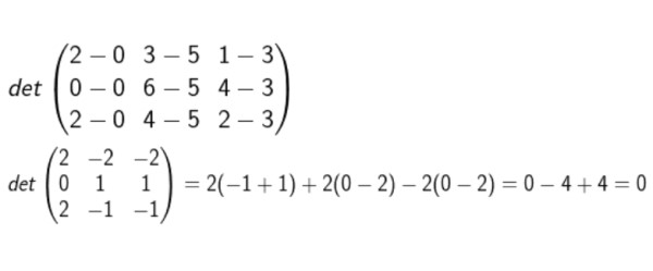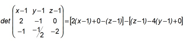 Esto es equivalente a decir que el producto triple de AP, AB y AC sea nulo. La ecuación anterior puede escribirse en forma matricial: