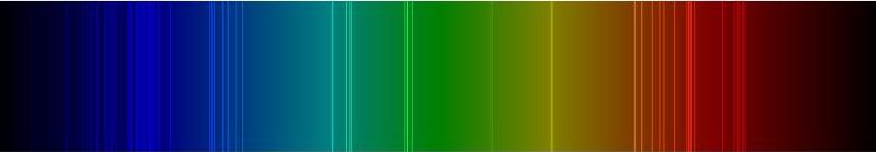 El espectro de absorción es totalmente opuesto al de emisión y también es específico para cada elemento. Al comparar ambos espectros de un mismo elemento, se observa que las líneas espectrales de emisión son las que están faltando en el espectro de absorción (imagen inferior).