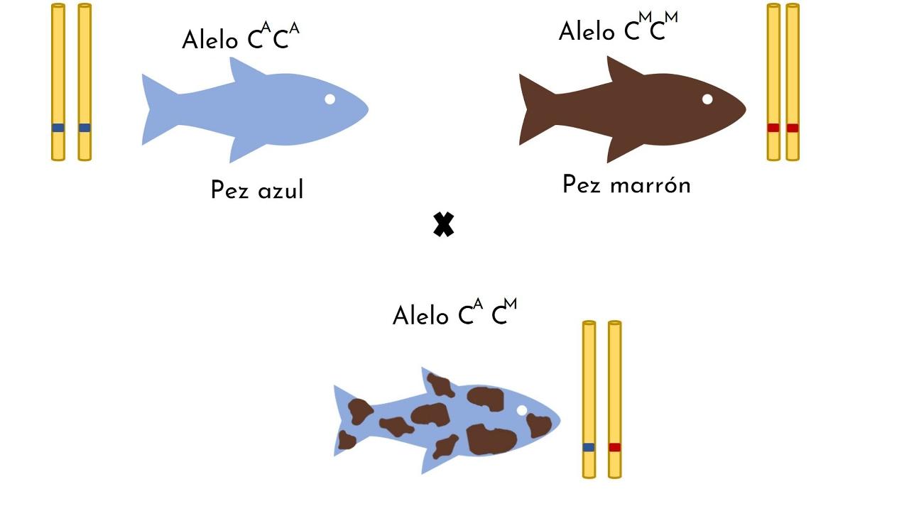 En el primero, el heterocigoto Aa manifiesta un fenotipo intermedio al de los homocigotos AA y aa; en el segundo, que es el que tratamos aquí, el heterocigoto manifiesta los dos alelos, A y a, con la misma fuerza, ya que en realidad ninguno es recesivo sobre el otro.