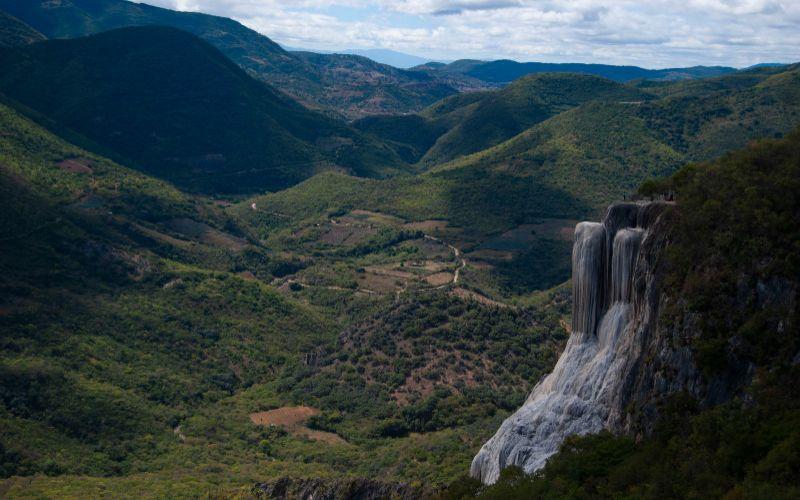 La exuberante belleza del estado es propicia para las actividades turísticas. Oaxaca está llena de rincones espectaculares, como Hierve el Agua, un conjunto de cascadas petrificadas constituidas por carbonato de calcio. Se formaron hace miles de años.