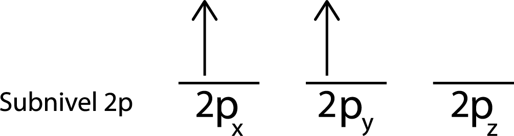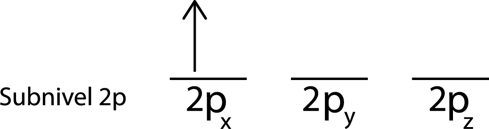 Colocamos el primer electrón en el orbital 2px ya que este es el primer orbital de la lista.