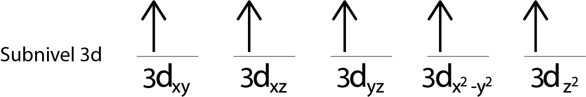 Llenaremos el subnivel 3d que contiene 5 orbitales: