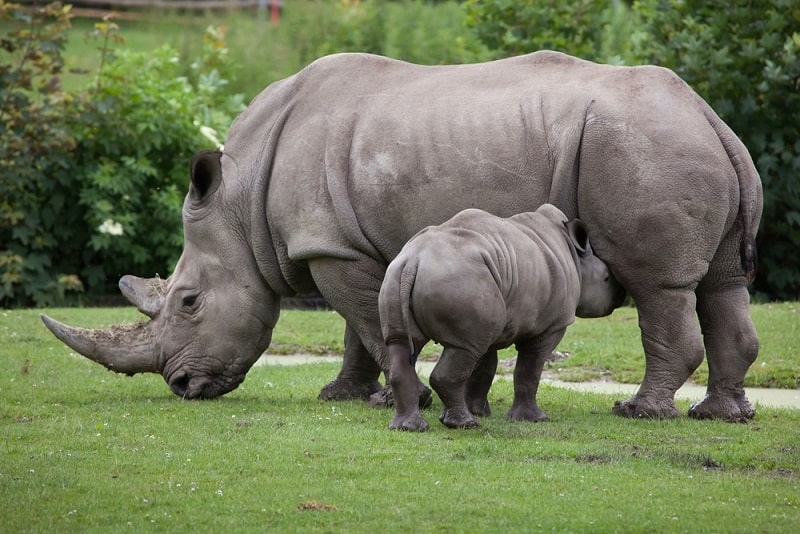 El rinoceronte blanco se encuentra en la actualidad dentro de la categoría de “casi amenazado” según la Unión Internacional para la Conservación de la Naturaleza (IUCN por sus siglas en inglés).