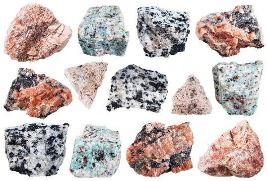 El granito representa el tipo de roca ígnea más abundante en la superficie continental y se caracteriza por tonos claros, con colores como el gris, negro-azulado, rosado violeta verdoso o amarillo.