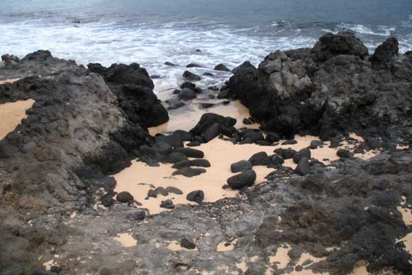 También puede ocurrir el enfriamiento brusco de gotas de magma basáltico o de flujos de lava que desembocan en el mar. Estas rocas ígneas presentan cristales más pequeños y mayor proporción de vidrio.
