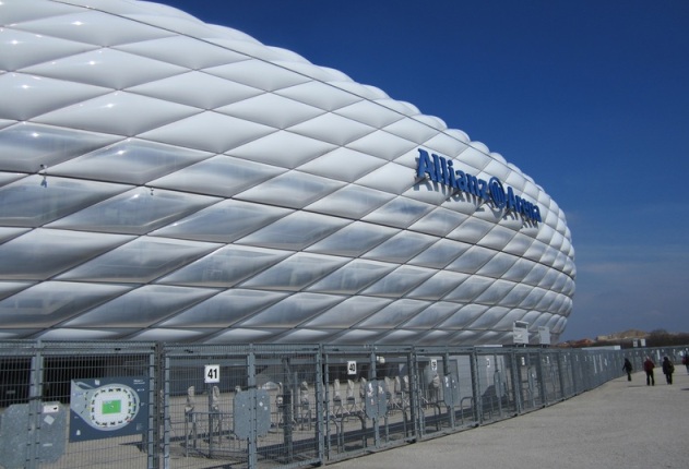 Figura 1. Los paneles de iluminación del estadio Allianz Arena en Munich, Alemania, se iluminan con los colores del equipo local y con luz blanca cuando juega la selección de ese país. Fuente: PxHere.