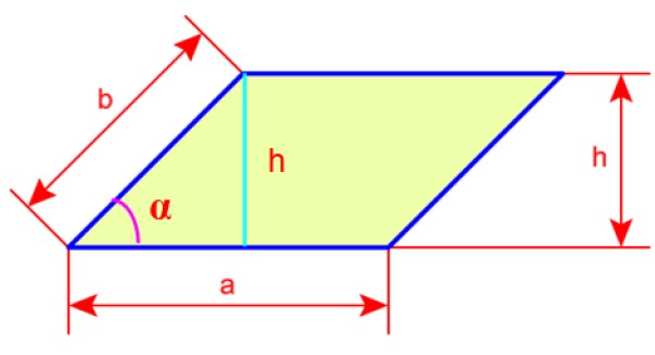 Figura 4. Lados y altura del romboide. Fuente: Wikimedia Commons.
