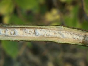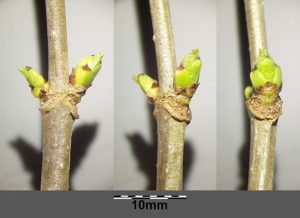 – Hojas. Las hojas son caducas, son opuestas e imparipinnadas. Miden de 20 a 30 cm. Los folíolos se agrupan de 5 a 7, tienen forma ovalada o lanceolada, con el margen serrado, sin pubescencia o con pocos tricomas por el envés, y algunas protuberancias diminutas.