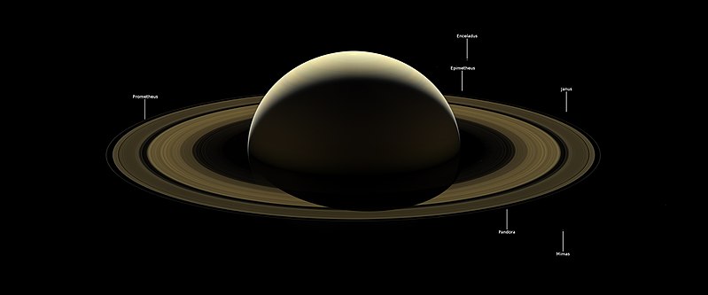 El sistema de satélites de Saturno es muy complejo; por ejemplo, se sabe que tienen una acción directa sobre los anillos: los satélites pastores.